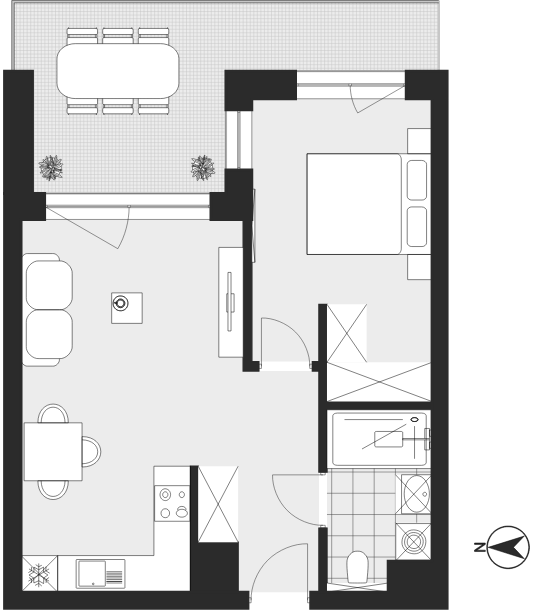 - Charakterystyka mieszkania: 44,44 m², 2 pokoje, 1 łazienka; stan: deweloperski