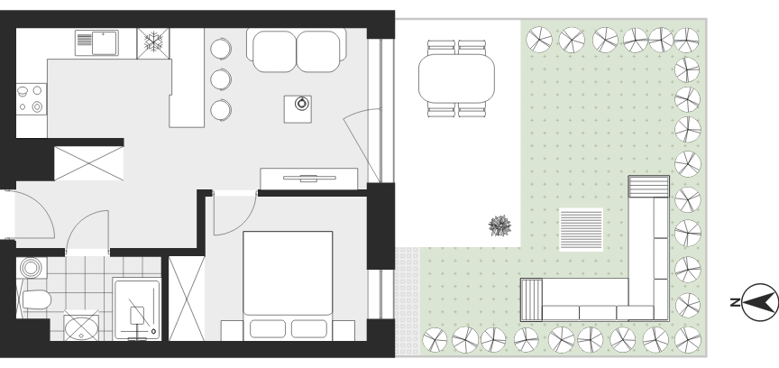 - Charakterystyka mieszkania: 36,21 m², 2 pokoje, 1 łazienka; stan: deweloperski