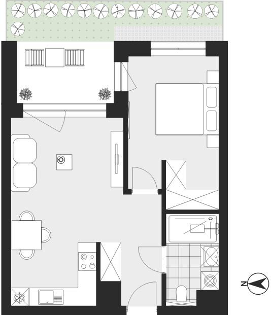 - Charakterystyka mieszkania: 44,44 m², 2 pokoje, 1 łazienka; stan: deweloperski