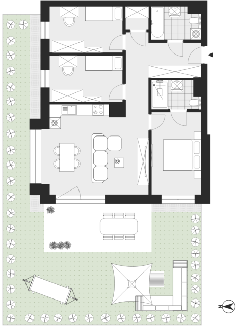 4-pokojowe mieszkanie z aneksem kuchennym, dwiema łazienkami, tarasem i ogródkiem, położone w II etapie inwestycji Panorama Bańgów w Siemianowicach (...)