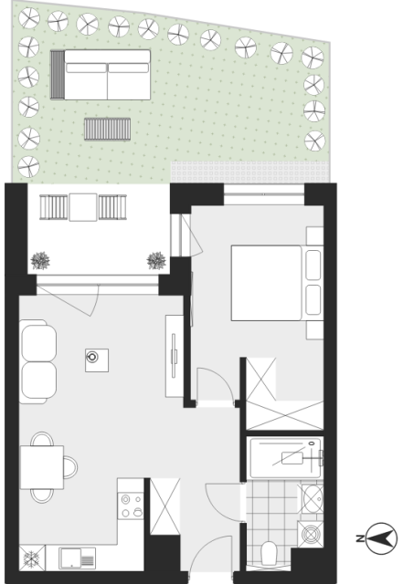 2-pokojowe mieszkanie z aneksem kuchennym, łazienką, tarasem i ogródkiem, położone w II etapie inwestycji Panorama Bańgów w Siemianowicach Śląskich, (...)