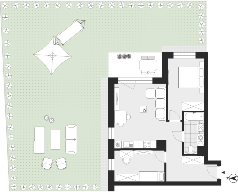 - Powierzchnia dodatkowa: taras (6,3 m²), ogródek (24,3 m²)